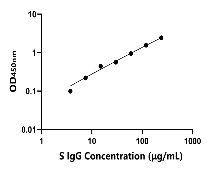 本试剂盒采用双抗体夹心法ELISA技术:将捕获抗体包被于酶标板上,捕获样品及标准品中的待测物IgG,清洗后,再加入生物素标记的检测抗体进行孵育后清洗,形成“捕获抗体-抗原-检测抗体”免疫复合物,随后加入链霉亲和素偶联的辣根过氧化物酶进行孵育,待孵育结束后清洗,接着加入TMB显色后,若样本中有待测物则显蓝色,加入终止液停止反应。检测过程中游离的成分均被洗去,用酶标仪在450 nm处测OD值,颜色的深浅和样品中的待测物的含量呈正比,通过绘制标准曲线计算出样本中IgG的浓度。