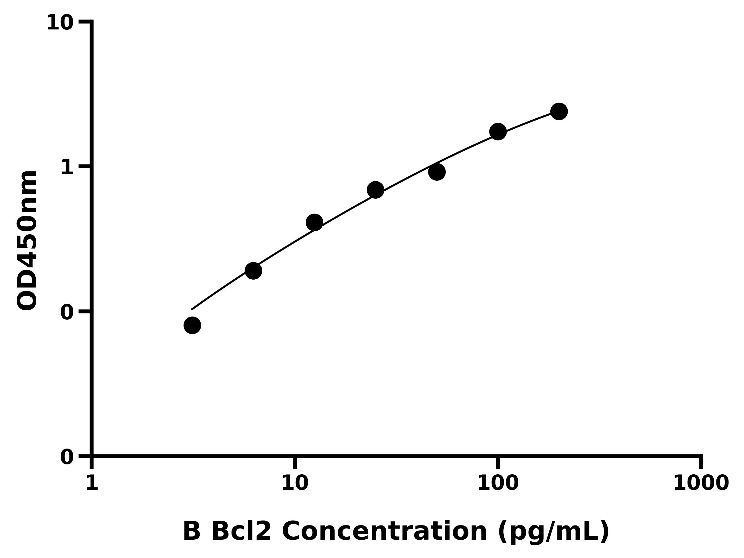 本试剂盒采用双抗体夹心法ELISA技术:将捕获抗体包被于酶标板上,捕获样品及标准品中的待测物Bcl2,清洗后,再加入生物素标记的检测抗体进行孵育后清洗,形成“捕获抗体-抗原-检测抗体”免疫复合物,随后加入链霉亲和素偶联的辣根过氧化物酶进行孵育,待孵育结束后清洗,接着加入TMB显色后,若样本中有待测物则显蓝色,加入终止液停止反应。检测过程中游离的成分均被洗去,用酶标仪在450 nm处测OD值,颜色的深浅和样品中的待测物的含量呈正比,通过绘制标准曲线计算出样本中Bcl2的浓度。