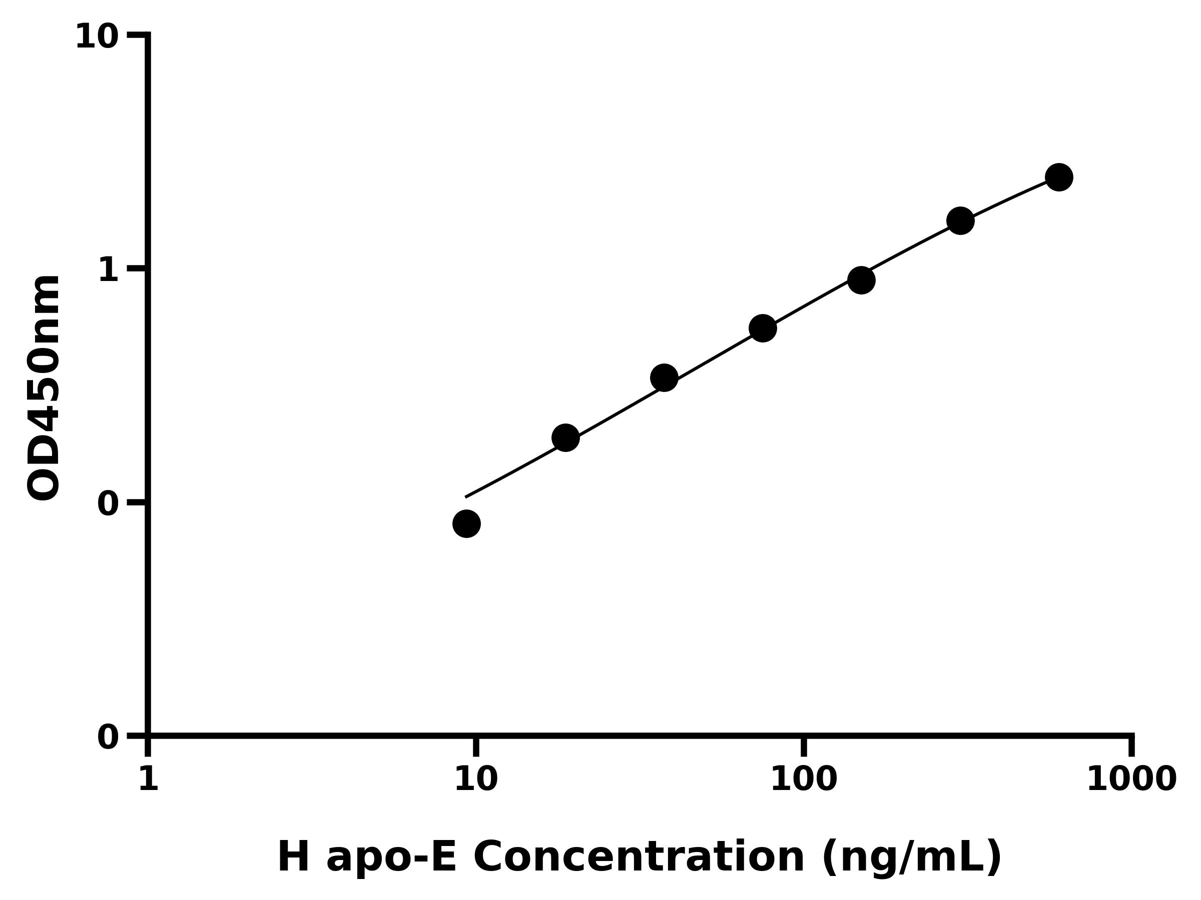 本试剂盒采用双抗体夹心法ELISA技术:将捕获抗体包被于酶标板上,捕获样品及标准品中的待测物apo-E,清洗后,再加入生物素标记的检测抗体进行孵育后清洗,形成“捕获抗体-抗原-检测抗体”免疫复合物,随后加入链霉亲和素偶联的辣根过氧化物酶进行孵育,待孵育结束后清洗,接着加入TMB显色后,若样本中有待测物则显蓝色,加入终止液停止反应。检测过程中游离的成分均被洗去,用酶标仪在450 nm处测OD值,颜色的深浅和样品中的待测物的含量呈正比,通过绘制标准曲线计算出样本中apo-E的浓度。